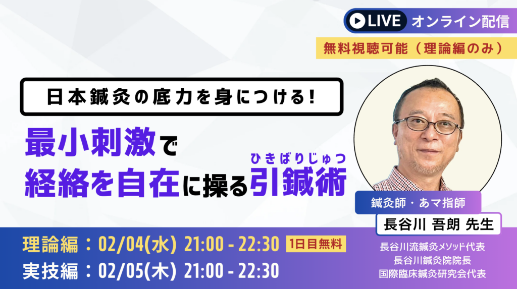 鍼灸業界を代表する講師によるオンラインセミナー。