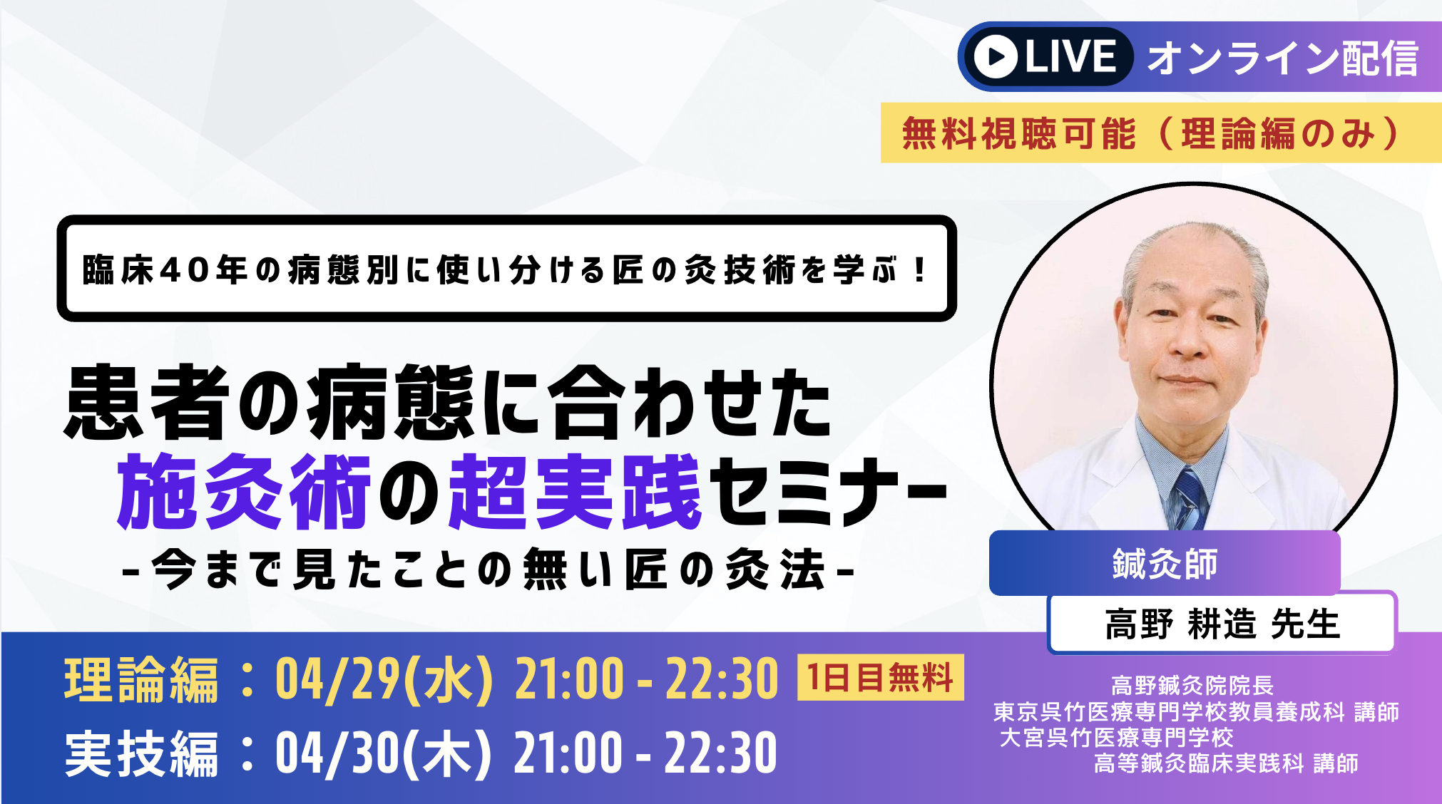 患者の病態に合わせた施灸術の超実践セミナー~今まで見たことの無い匠の灸法~