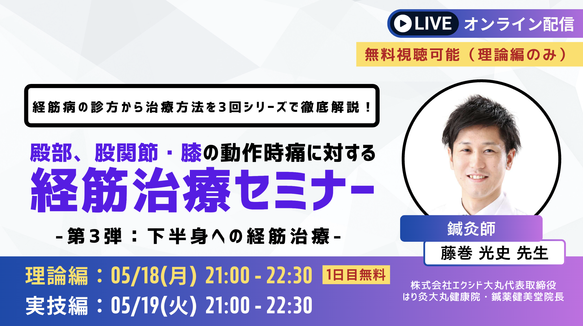 殿部、股関節・膝の動作時痛に対する 経筋治療セミナー